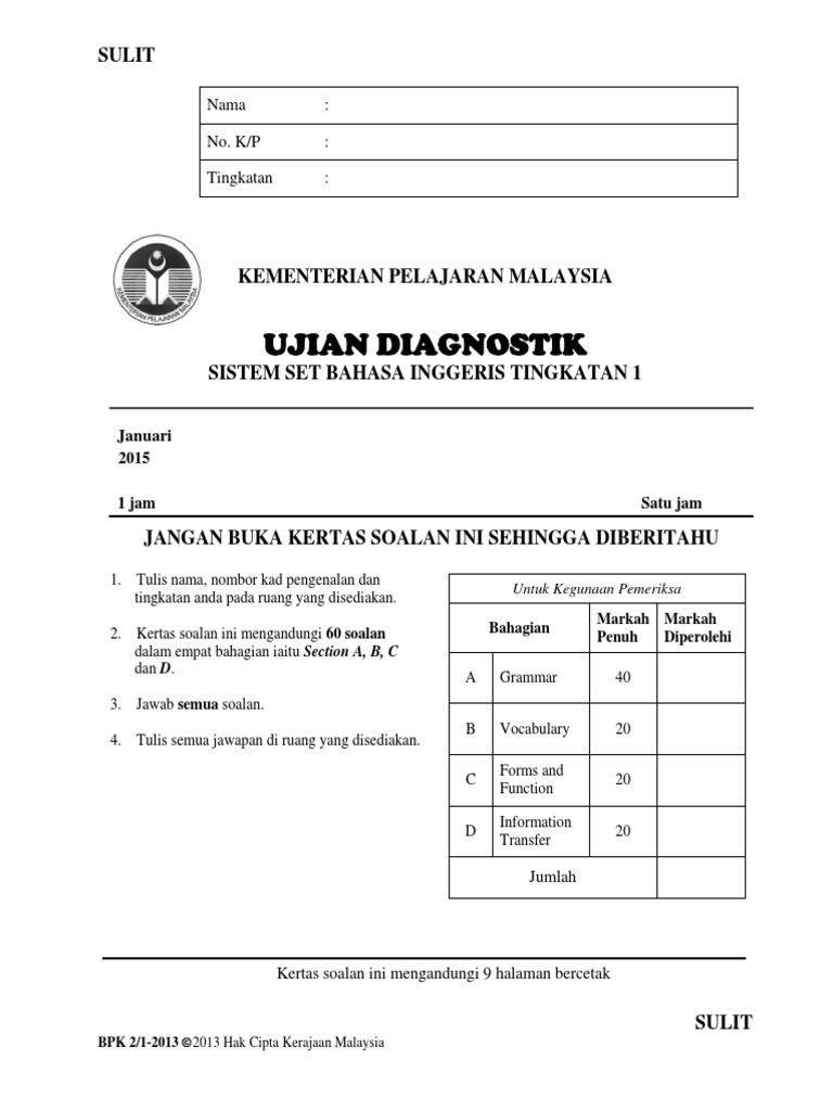 Soalan Peperiksaan Akhir Tahun Bahasa Melayu Tingkatan 1 Pdf